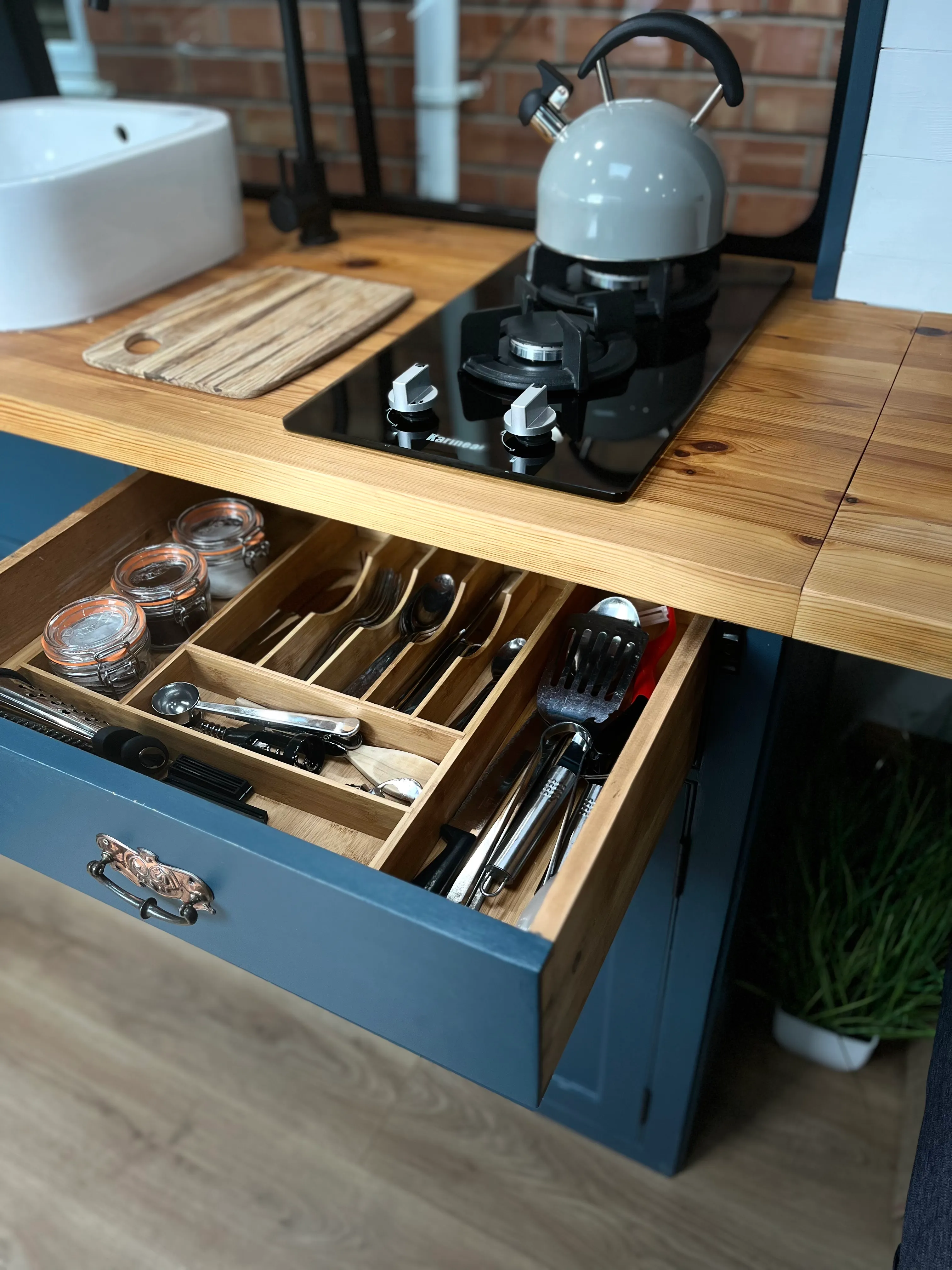 Don’t let the size fool you—Ozzy is fully kitted out for life on the go. Inside you’ll find clever storage, comfy bedding, a handy little kitchen, and thoughtful touches to make you feel right at home. It’s small-space living with a big heart.